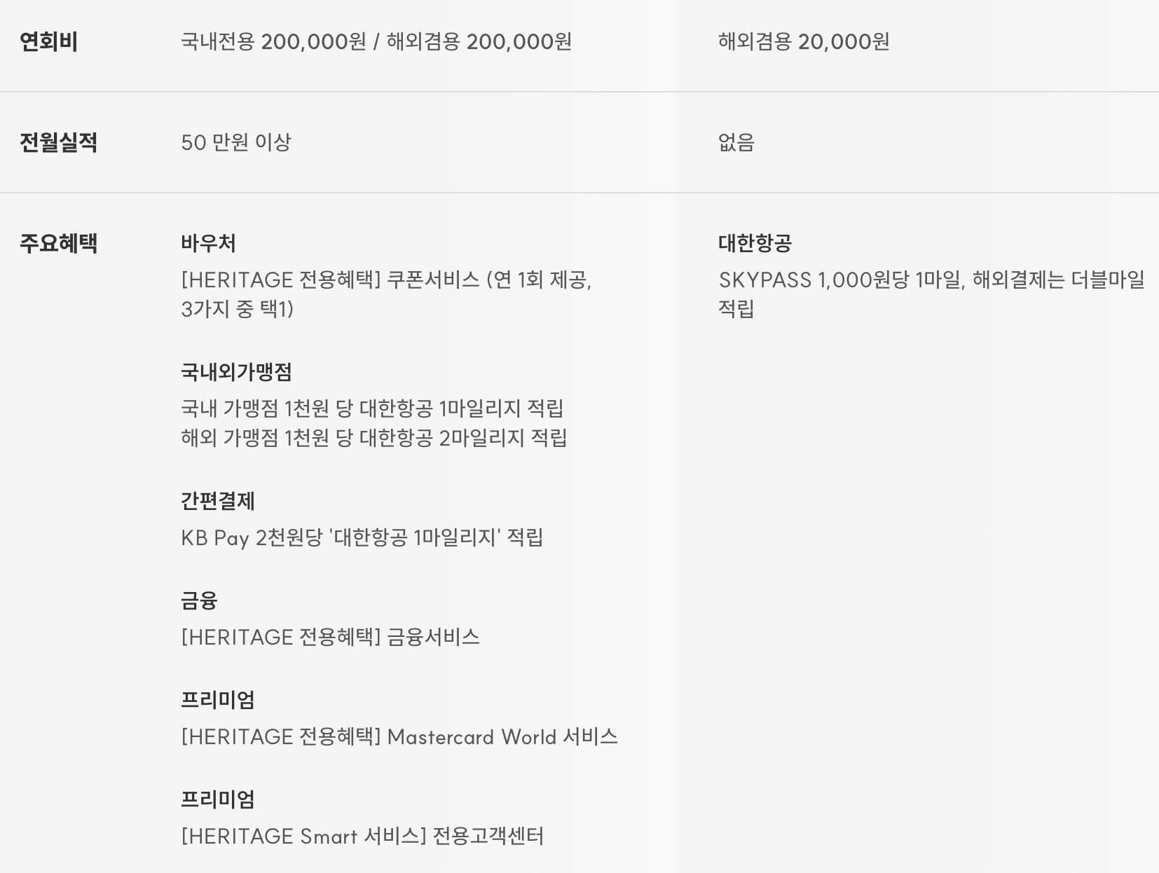 얼마전 국민카드 헤리티지 스마트 대한항공 카드를 발급 받았습니다. 아코르 시그니처 가입때문에 만들긴 했는데. 나름 마일리지 모으기에 괜찮은거 같더군요. 카드 혜택에 대해 간략히 알아보겠습니다.