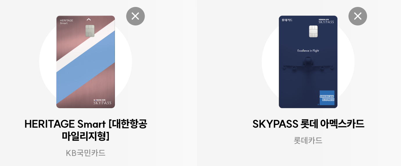 국민 헤리티지 대한항공 VS 스카이패스 롯데 아멕스